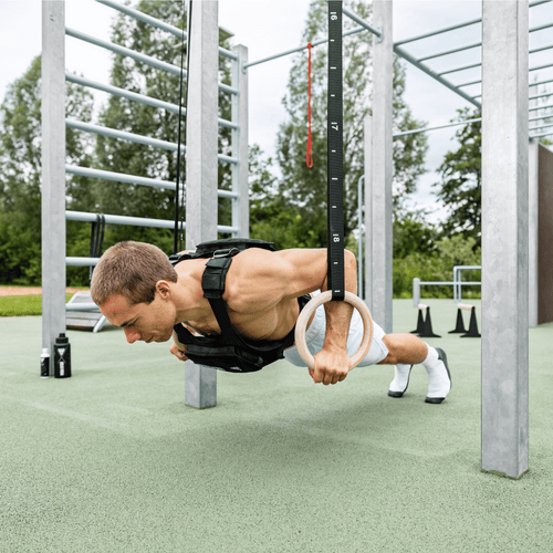 Este set contiene todo lo necesario para un entrenamientocalisténico eficaz en casa. Permite realizar todos los ejercicios importantes de fuerza y fitness de forma cómoda y eficaz.