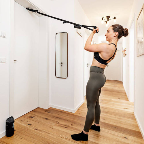 El FREESIXD Pocket puede fijarse de forma flexible en distintos lugares, por ejemplo, en casa, en una habitación de hotel, al aire libre en los árboles o de viaje. Esto le permite entrenar prácticamente en cualquier lugar.