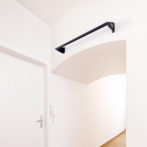 Necesita una pared estable, por ejemplo de hormigón, ladrillo macizo o madera maciza. Las paredes de cartón yeso o las paredes huecas no son adecuadas. La varilla se atornilla firmemente por encima del marco de la puerta.