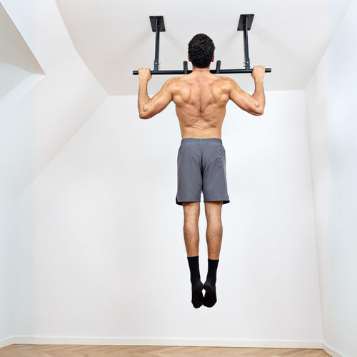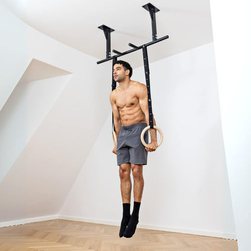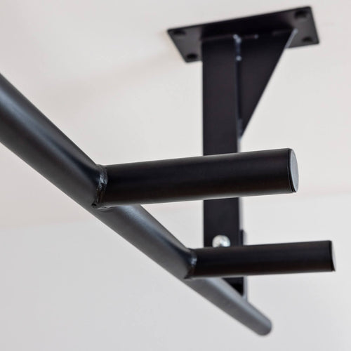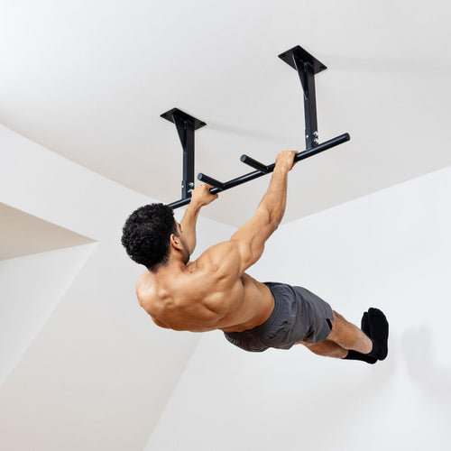 La barra de dominadas de techo combina funcionalidad y calidad para un entrenamiento efectivo en casa. Gracias a la robusta fijación al techo, el suelo permanece libre y el área de entrenamiento se utiliza de manera óptima.