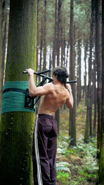 Die Stange ist in weniger als einer Minute am Baum fixiert, ohne diesen zu beschädigen. Die steckbaren Stangen ermöglichen den Transport im Rucksack zu deinem Lieblings-Trainingsort. Dank hochwertiger Materialien kaufst du diese Klimmzug- und Dip Stange nur einmal und trainierst damit ein Leben lang.