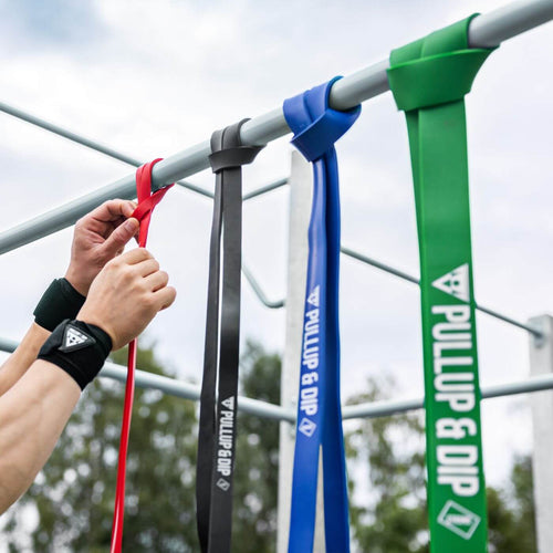 Las bandas te ayudan con ejercicios pesados o hacen que tu entrenamiento sea más duro cuando estés preparado. Más apoyo o más desafío: todo con un solo set.