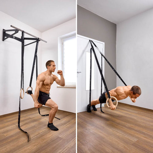 Ya sean flexiones en la puerta, ejercicios de movilidad o un entrenamiento de cuerpo entero en el salón: ¡el set aporta variedad y eficacia a tu entrenamiento en casa!