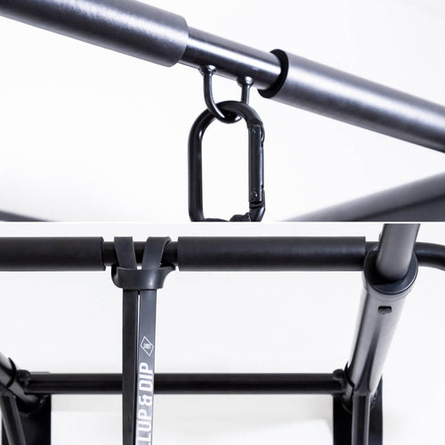 Incluye banda de dominadas (resistencia: ligera) como soporte para dominadas o para otros numerosos ejercicios. La barra de dominadas también dispone de un práctico ojal al que puedes enganchar un saco de boxeo o un entrenador de sling.