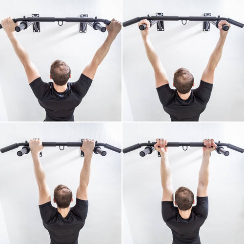✔️ Diferentes posiciones de agarre: La barra dominadas pared multiagarre te ofrece cuatro posiciones de agarre diferentes (ancha, estrecha, chin-up o paralela) para un entrenamiento variado.