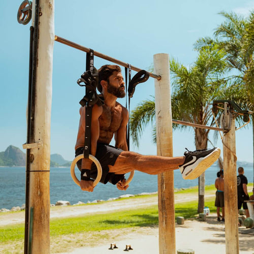 Las anillas de gimnasia, también se completan perfectamente con nuestras barra de dominadas y barras de tracción Pullup & Dip. Para que puedas realizar muchos ejercicios más, y completar de manera óptima tu entrenamiento Freeletics, Calistenia.