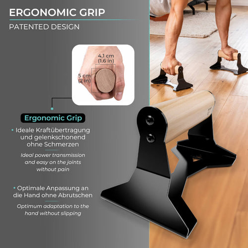 Soporte para flexiones de mayor calidad del mercado con empuñadura de madera ergonómica