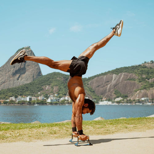 Además de las flexiones de brazos, también puedes utilizar las empuñaduras de forma óptima para hacer parada de manos, usándolo como barras para el soporte de manos.